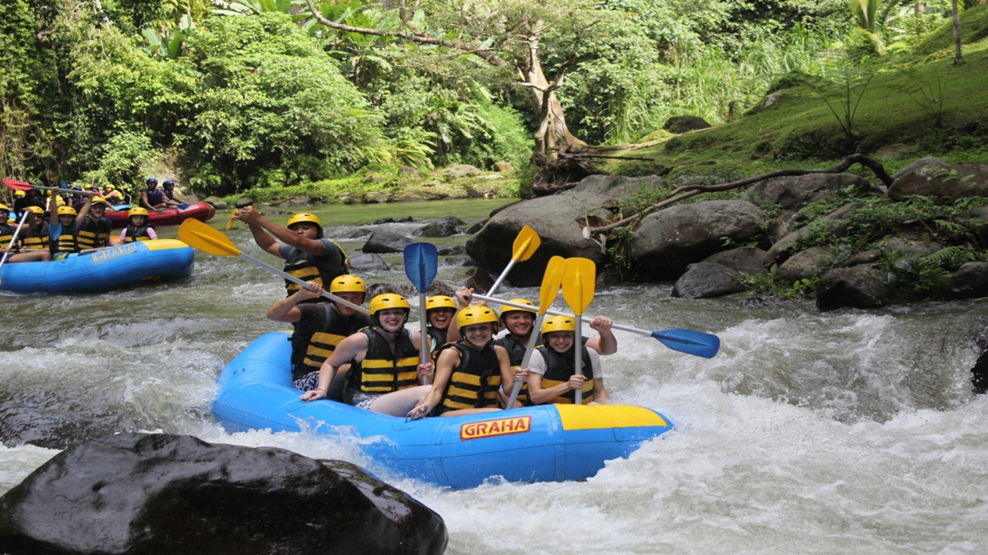 Start your adventure at Telaga Waja river in the east Bali below the great Mount Agung. Once you paddle on the river, you’ll enter the secret beauty of Bali. through the pure nature, wild tropical forests, over hanging trees and vines creating a thrilling beginner-class rafting course. Enjoy the extremely clear water, flows around numorous hairpin curves and experiences out breathtaking grade 3 and 4 rafting through a deeply carved valley with towering waterfalls along 12 km course.